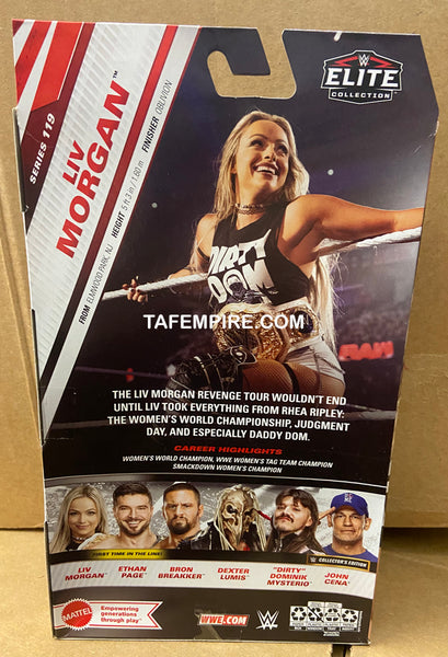 Bring the chaos and charisma of Liv Morgan home with WWE Elite Series #119! This dynamite action figure showcases the rebellious superstar in stunning detail, complete with articulated joints for epic pose-ability and authentic ring gear. Whether you're recreating her most jaw-dropping moments or building your ultimate WWE collection, this Mattel figure delivers the attitude and action fans crave. Get ready to "Liv in the Moment" with this must-have collectible!